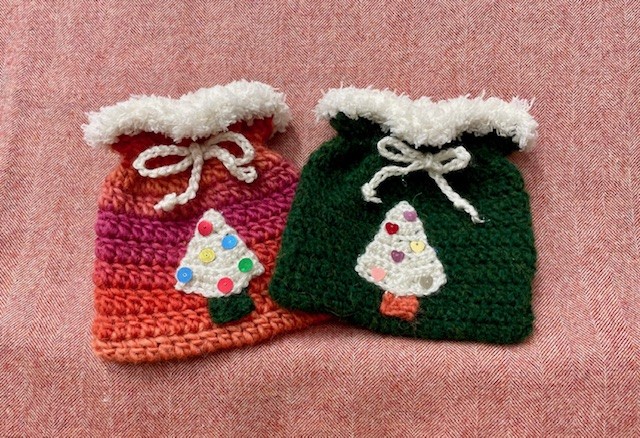 今回つくるのは「長編みのクリスマスツリーつきミニポーチ」