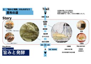 「旨味と発酵のものがたり 昆布の道」。北前船が運んできた昆布を、京都はじめ各地に送り届け、和食を象徴する「旨み」の文化の橋渡しをしました。