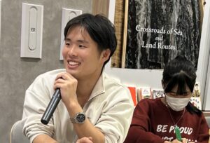 「お菓子の道について話します!」と元気に声をあげた小堀涼雅さん。知育*地方創生を掲げた「ボクレキ(僕らの歴史書)」プロジェクトを実施。実家は、明治34年創業の敦賀の菓子専門店「小堀日之出堂」さん。